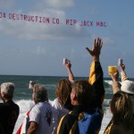 Jack's wake was a first in San Diego or probably in the whole US. Never has there been a RIP banner such as the one that flew by Windansea in Jack's memory. The crowd stood cheering and toasted as the plane flew over the 300-plus mourners that filled the parking lot - a day that will always be remembered for the great person he was. His longtime friend Doug Moranville … [Read more...] about Mac’s RIP Memorial Banner – A first in Southern California
