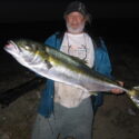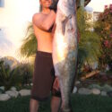 In 2006, San Quintin, Baja California, Mexico, he got about an 80-pound white sea bass, just a few ounces short of the world record at the time.