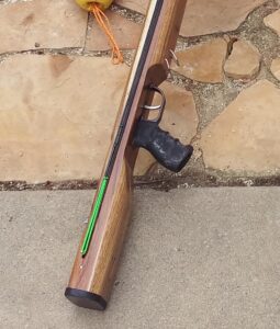 One of Josh’s designs; he inserted the speargun handle/trigger in the stock,  this allowed more control and less recoil.