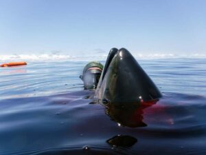 Russ’s diver hit the water first and nailed the first tuna within a few seconds, and then a few seconds later, Kevin from Josh’s boat, scored a hit. Unfortunately, both tuna ripped out the dart. The day was not starting off well…but it was about to change.